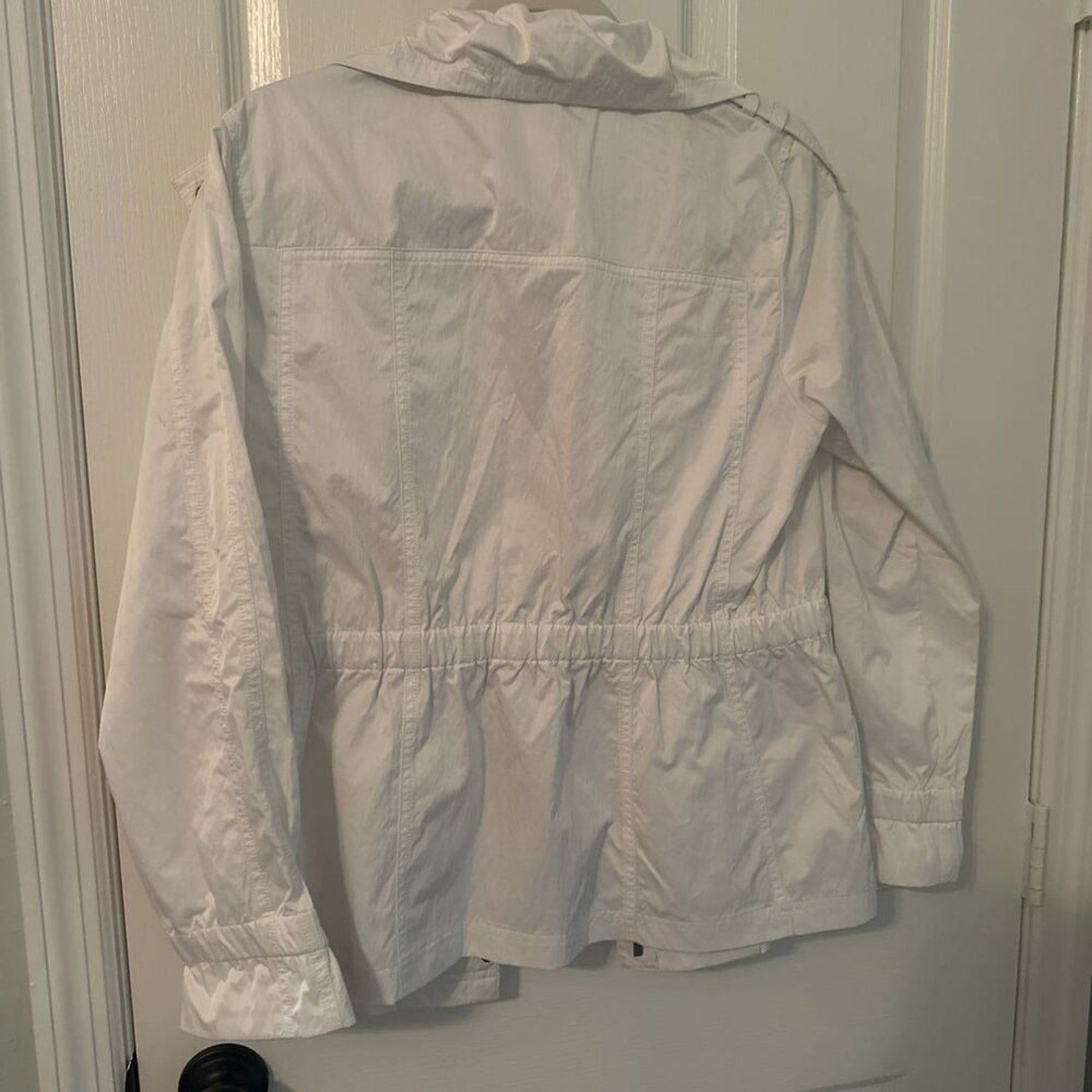 Chico's Synergy lined white lightweight white jacket w zipper and elastic cinch