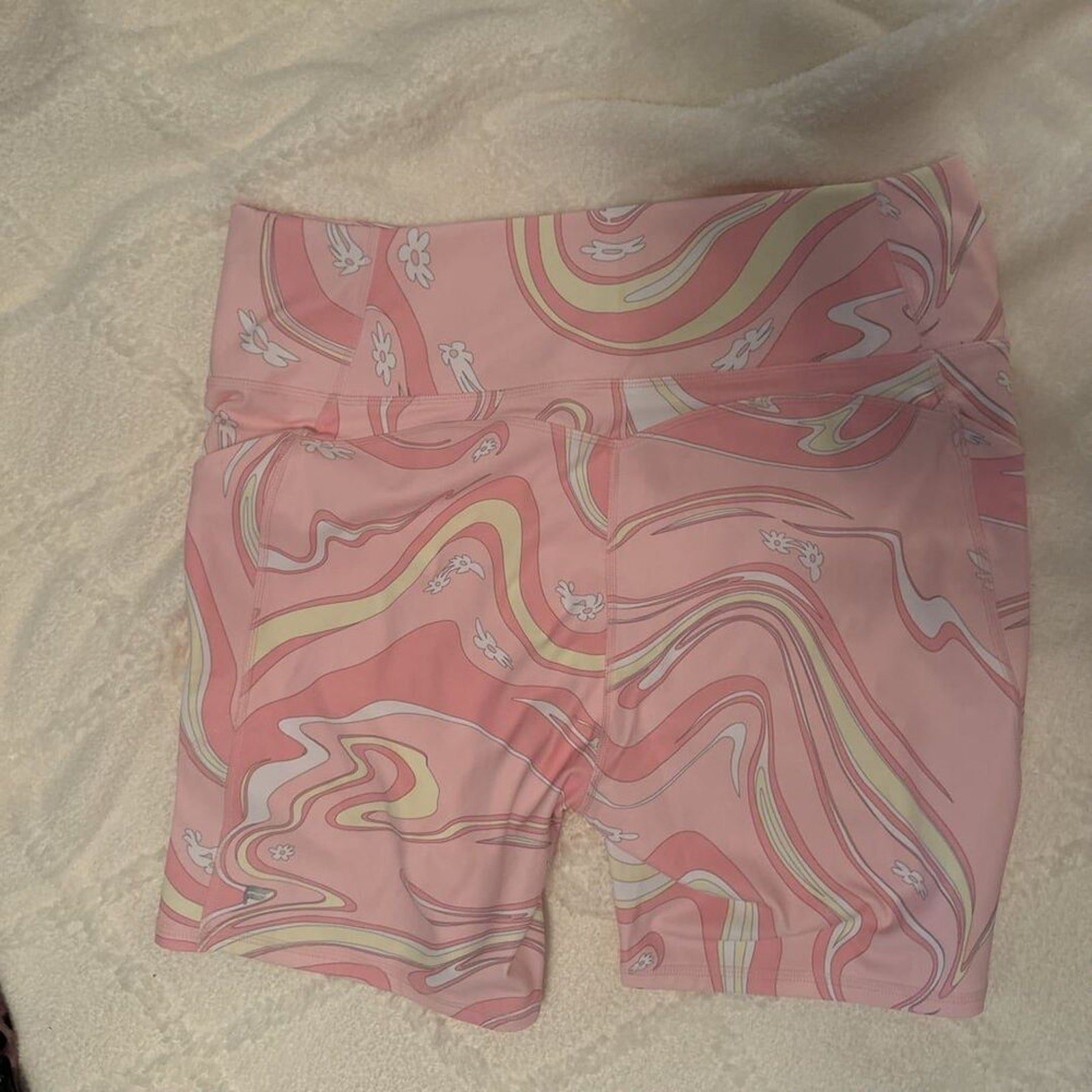 These Fabletics Pure Luxe Oasis High-Waisted Shorts in size small offer a stylish and comfortable fit. Featuring a trendy pink swirl pattern, they are perfect for workouts or casual wear. New with tags.
